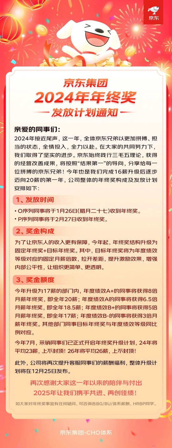 【导读】京东公布2024年年终奖发放计划:最高8倍月薪年终奖