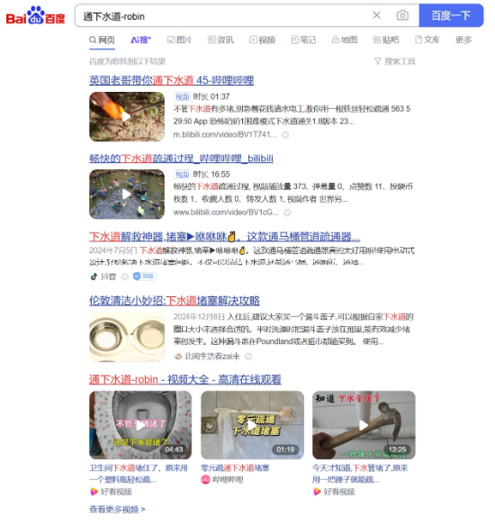 (搜索关键词“通下水道-robin”,搜索结果无广告)