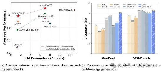 1月28日凌晨,人工智能社区Hugging Face显示,DeepSeek刚刚发布了开源多模态人工智能模型Janus-Pro,拥有10亿和70亿参数规模。其中Janus-Pro-7B在GenEval和DPG-Bench基准测试中击败了OpenAI的DALL-E 3和Stable Diffusion。
