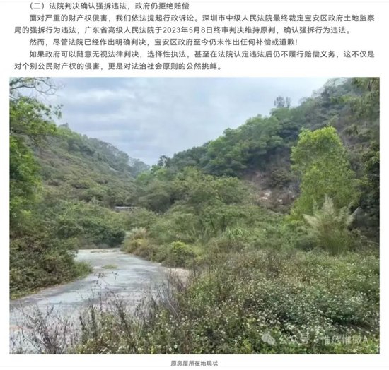 2月28日,冯某网络发文控诉,“在法院判决确认强拆行为违法后,(政府部门)至今仍拒绝赔偿!这严重伤害了深圳的法治形象……”
