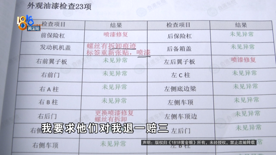 张先生:我要曝光他们,同时也要维护自身的权益,那根据《消费者保护法》,要求他们对我退一赔三。因为他们卖给我的车不是原车,他们存在欺诈行为。