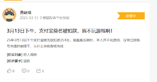 根据黑猫投诉【投诉入口】平台显示,近期以来多名消费者在平台反映巨人网络游戏扣费问题。