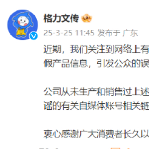 格力文传强调,公司从未生产和销售过上述产品,目前也没有相关产品业务规划。我们已对造谣传谣的有关自媒体账号相关链接进行取证,坚决采取法律措施打击网络谣言。
