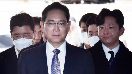·李在镕(穿深色西服者)前往法院出庭。