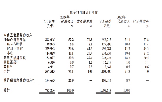 从核心财务指标来看, 2024年对海伦司而言无疑是艰难的一年。报告期内,海伦司总收入从2023年的12.09亿元大幅下滑37.8%至7.52亿元。