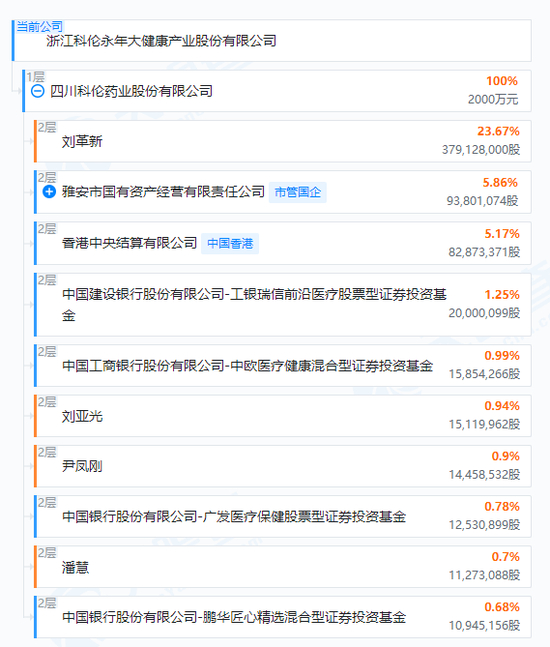 天眼查信息显示,科伦药业旗下聚焦大健康的公司科伦永年成立于2024年,科伦药业100%控股,实控人为刘革新。