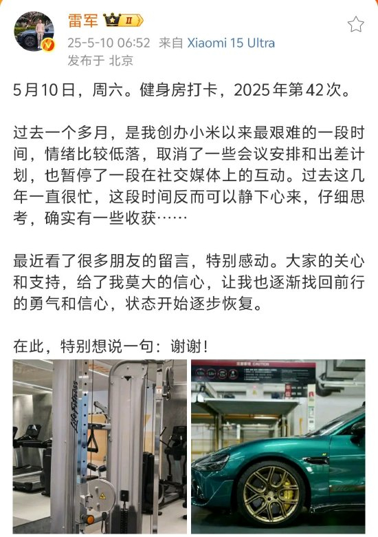 雷军表示,“最近看了很多朋友的留言,特别感动。大家的关心和支持,给了我莫大的信心,让我也逐渐找回前行的勇气和信心,状态开始逐步恢复。在此,特别想说一句:谢谢!”(闫妍)