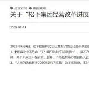 松下电器:马达产品业务发展前景良好,不存在“2025年度内退出或出售课题事业”的计划