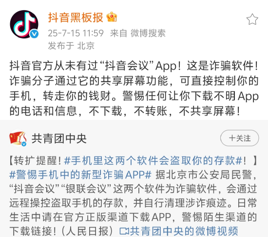 警方曝光“抖音会议”系诈骗软件 抖音紧急辟谣:从未开发该App