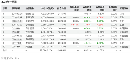 而今年以来,中加喜利回报一年持有A跑输大盘,同期沪深300指数上涨2.53%。一季度末,该基金重仓股主要配置于电气设备、新能源汽车、资源等行业。
