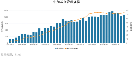 然而,在总经理更换后,中加基金管理规模有所下滑,2024年二季度末为1463.62亿元,而今年一季度末为1234.41亿元,缩水超过200亿元。