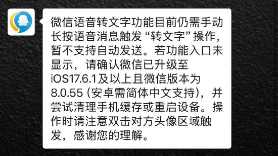 腾讯客服表示,该功能正在灰度上线中,相关功能会根据反馈持续调整优化,请以实际使用情况为准。目前微信语音转文字功能仍需手动长按语音消息触发“转文字”操作,暂不支持自动发送。