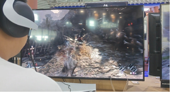 靠近索尼展台的位置,则是近期遭遇舆论的《明末:渊虚之羽》。由于优化和魔改等问题,上线Steam后其一度差评如潮。有玩家吐槽,游戏建模观感尚可,但服装与角色身体间缺乏互动。同时,作为正式发售的游戏版本,还有玩家发现了“空气墙”等BUG场景。