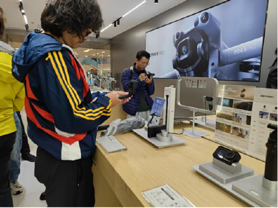 (大疆体验店里消费者正在选购)