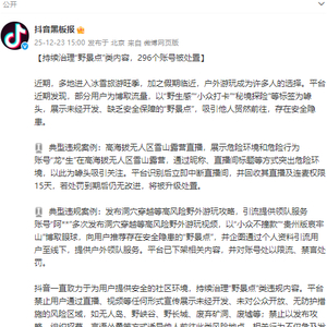 抖音:持续治理“野景点”类内容,296个违规账号被处罚