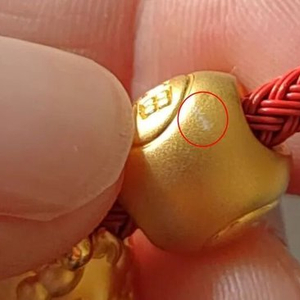 李女士说,挂坠购买后并未立即佩戴,直至1月13日晚才上身。然而,其中的足金福袋挂坠佩戴一天便被刮花并露出白色痕迹。