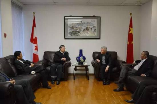此外,2016年3月,李凡荣还到访加拿大阿尔伯塔省,约见了中国驻卡尔加里总领事馆总领事王新平,双方就国际油价走势、中国对外关系发展、企业管理等话题交换意见。据了解,卡尔加里位于阿尔伯塔省,是加拿大第四大城市。下图为新闻配图。