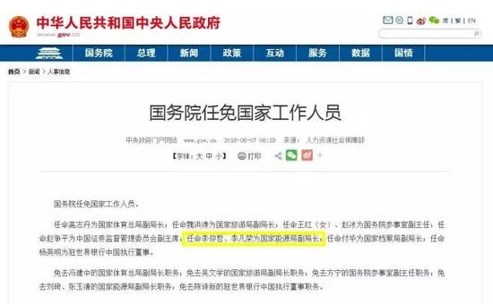 国家能源局迎来两位新任副局长!今天(6月7日),中国政府网发布国务院任免国家工作人员的消息。李仰哲、李凡荣被任命为国家能源局副局长,免去刘琦、张玉清的国家能源局副局长职务。