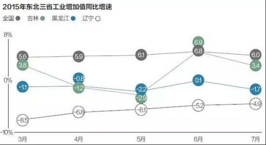 事实上,不仅在哈尔滨、沈阳、松原、长春,整个东北都在急速下坠。统计数据显示,2015年,吉林、黑龙江、辽宁的GDP增速分别为6.5%、5.7%、3%,远低于全国平均增速。
