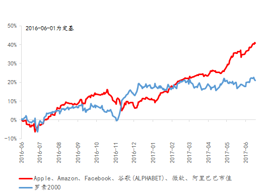 第一个是孤悬海外的中国新经济。中国经济最有活力、景气迸发的部分(新动能)几乎都不在A股,我们做个假设,中国新经济,包括未上市的这块,在中国的A股市场,“漂亮50”应该是他们,阿里、腾讯(共计约5万亿人民币的市值),加上一批中概股以及未上市的华为,就是十几万亿人民币的资产,占中国资本市场A股所有的估值(四十几万亿)的20%,美国五大上市公司在美国所有股票市值的10%以上,占纳指成分股的30%,其实中国也一样,朝气蓬勃的好东西,不受信用周期冲击的好东西都在国外。所以这是一个方向。