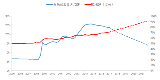 大家看到M2跌到9.6%,它应该迟早要跌到GDP的名义增长率之下,这必然是个趋势,为了平顺这个趋势,假设资产价格进入了一个确定向下的通道,我觉得中央银行面临着一个扩表的过程,因为中央银行在2010年以后一直在缩表,这就是金融去杠杆,和美国刚好相反,美国未来是进入了一个联储的表在收缩的阶段,但是商业金融系统的表面临着一个提速的过程,这是特朗普的经济核心,希望看到的效果,中美走在两个不同的金融周期当中,刚好错位半个身子。