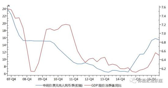 原因一,随着一轮朱格拉周期启动,中国经济增长显著超预期。2017年1-2季度中国名义GDP增速达11.4%,2012年年中以来最高;实际GDP增速达6.9%,过去8个季度以来最高,显著超出2015-2016年外部市场对于中国经济的悲观判断。市场对于2017-2020年的经济预期也已明显改变(我们基于人口周期的2017-2020年经济“稳态”的判断正在逐步得到验证)。2017年的人民币汇率表现,部分源于对一轮朱格拉周期的预期。