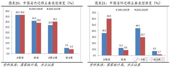 在2010-2015年间,由于东部地区外来务工人员大量回流中西部地区,该时期的省际人口迁移可能出现如下两个特点:1)大量人口从东部地区城市回流中西部地区城市,即城-城迁移比重上升;2)大量人口从东部地区乡镇回流中西部地区城市,即乡镇-城迁移比例上升。