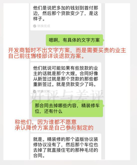 截图内容看来,白鹭郡的确准备给前期买贵的业主退款,正在和银行协商变更按揭合同的方案。