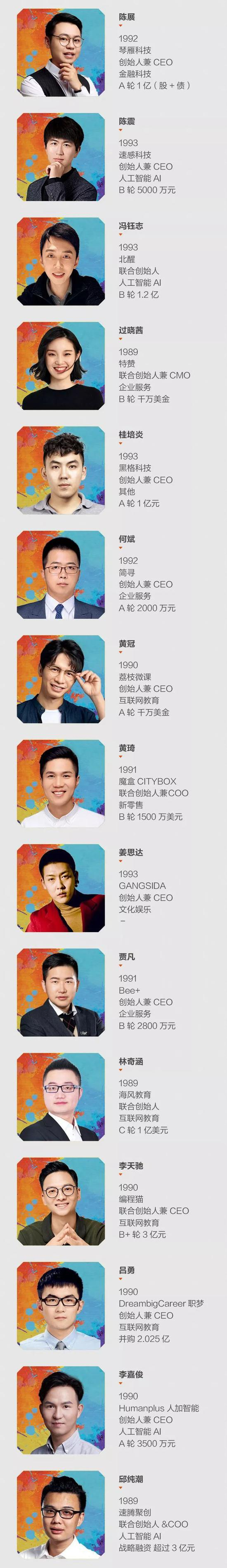 30岁以下创业新贵榜单出炉:看平均年龄刚过27的小鲜肉们,如何在资本寒冬狂揽150亿