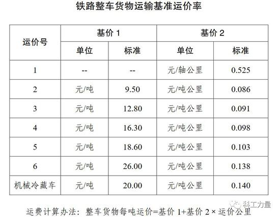那么中国铁路货运的价格为几何呢?2017年12月14日国家发改委发布了《国家发展改革委关于深化铁路货运价格市场化改革等有关问题的通知》,通知根据国务院要求扩大铁路货运价格市场调节范围,对12个货物品类运输价格实行市场调节,并公布了市场指导价。