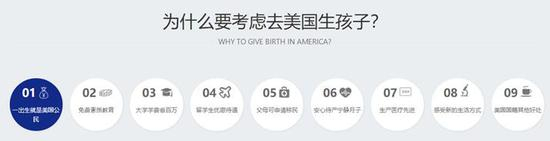 从实用主义的角度看,去美国生孩子,说到底图得是美国的福利制度。根据1868年通过的美国宪法第十四条修正案:“凡在美国出生或归化美国的人,均为合众国和他们所居住州的公民。”也就是说,按照美国的落地国籍政策,在美国出生的孩子便拥有美国的公民身份,相应的就能够享受美国教育、医疗、就业、保险、养老等各方面的社会福利与保障待遇。并且,持美国护照可享受全球186个国家、地区的免签证和落地签证政策,父母在孩子年满21岁后也可以依据家庭团聚优先的政策申请移民。这方面的信息,美国月子中心一般都会在官网上写得清清楚楚,以此招徕客户。