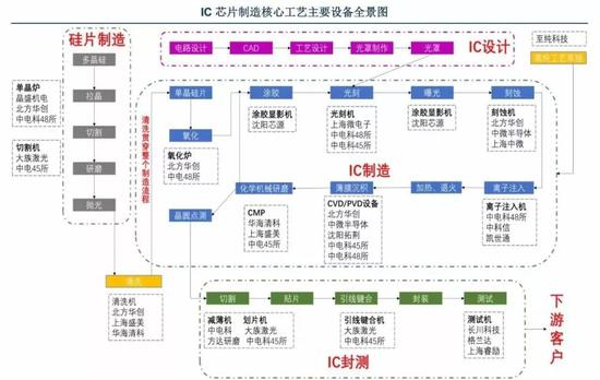 这全景图大概描述了从硅片到芯片的全过程及中国的设备制造商,绝对是业内专家所做,值得一看。