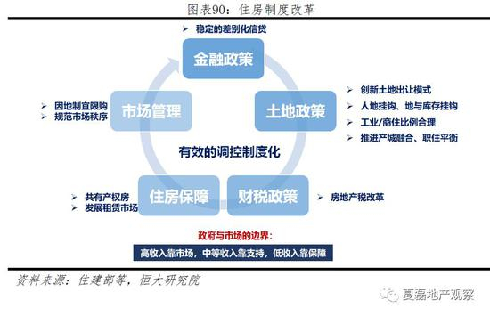 2016年12月中央经济工作会议首次提出“房子是用来住的,不是用来炒的”,强调住房的居住属性,成为当前房地产政策的指引。2017年2月首次提出“研究房地产长效机制和基础性制度安排”,短期调控开始向长效机制转变;17年10月十九大报告指出“加快建立多主体供给、多渠道保障、租购并举的住房制度”,为新时代住房制度指明方向。目前政策已经出现诸多有利改革:从全国一盘棋到因城施策、从短期调控到长效机制建设。未来,以“高收入靠市场、中等收入靠支持、低收入靠保障”为原则、以行政措施为主向综合措施转变,形成金融、土地、财税、住房保障、市场管理等一揽子政策工具,将是住房制度和长效机制的改革方向。