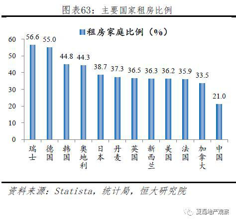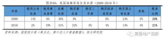 中国城镇居民租赁比例低于多数发达国家。第五、六次全国人口普查数据显示,2000-2010年城镇家庭租房比例维持在21%左右,其中2000年有14%的家庭租公房、6%的家庭租商品房;2010年2%的家庭租公房、19%的家庭租商品房。