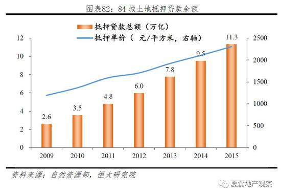 衍生土地财政。分税制改革、农地征收垄断、土地出让收入由地方支配 、GDP锦标赛、快速城镇化,均是土地财政产生的原因。2017年,土地出让金、房地产相关税收占地方综合财力的24.0%和11.4%,房地产总共贡献了地方政府财政收入的35.4%。同时,根据国土资源部数据,2015年84城土地抵押贷款余额已达11.3万亿。