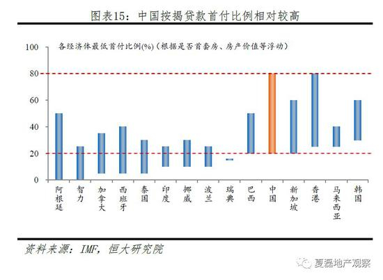 我国按揭贷款首付比例处于国际较高水平,最低首付比例首套房20%-35%,二套房40%-80%。根据IMF统计,很多发达经济体最低首付比例均在10%以下,如美国、英国、法国、奥地利、荷兰均可零首付;德国、新加坡、日本等属于首付比例较保守的国家,在20-30%之间,与中国接近。