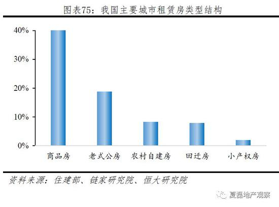 (1)商品房出租占比低。根据住建部的一项抽样调查,出租房中商品房占比仅为40%,老式公房、农村自建房、回迁房和小产权房等占了很大比例,配套不完善、居住环境破旧成为普遍问题。