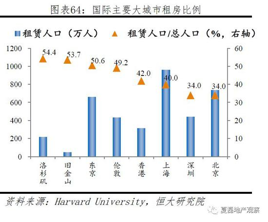 租赁市场是发达经济体住房供给的主力。多数发达经济体租赁比例在35%以上,如瑞士(57%)、德国(55%)、韩国(45%)、日本(39%)、美国(36%)。在核心大城市租赁比率更高,如洛杉矶、旧金山、东京租房比例均超50%,分别达到55%、54%和51%。