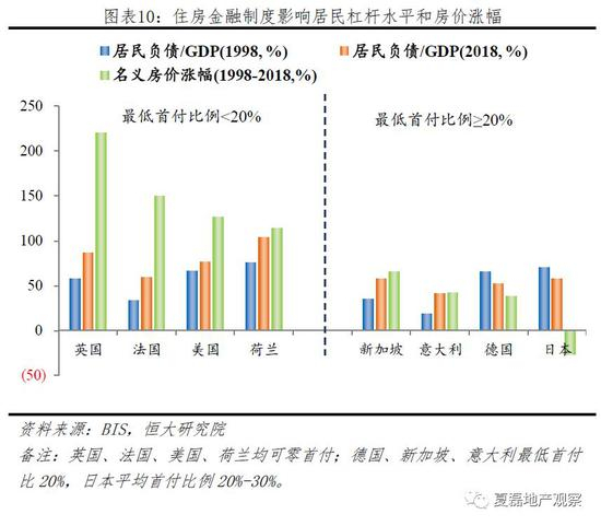 住房金融制度决定购房者获得资金的难易程度、加杠杆的规模和成本,影响房价走势。以过去二十年为例,首付比例低的国家,如英国、美国、法国,相比首付比例高的国家,如德国、新加坡,居民部门杠杆率攀升更快、房价上涨幅度更大。