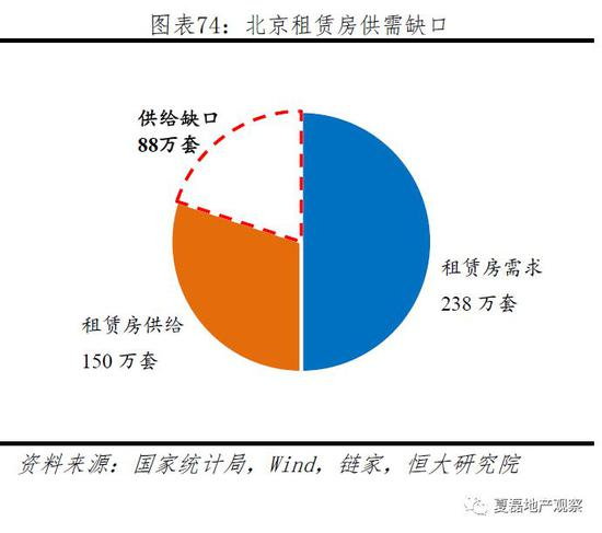 问题一:租赁房源单一、热点城市房源不足。中国住房租赁市场缺少规模化、规范化、长期机构投资者,个人房源占比达83%。同时热点城市需求旺盛,供给端存在缺口。以北京为例,2016年末北京常住人口2173万人,租赁人口占比约34%,估算租赁房需求为238万套,而目前北京租赁房屋约150万套左右,存在约1/3供需缺口。