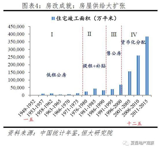房改解决了8亿城镇人口的住房问题。1978年以前,住房由政府统一建设、分配,供给效率低,1978年人均居住面积仅3.6平方米。伴随改革开放,中国开启住房制度改革征程:1978-1998年依次通过提租、出售公房、停止住房实物分配,启动了商品房市场。市场的力量创造人类建筑史上的奇迹:城镇竣工住宅面积从1978年3752万平增长至2017年的9.9亿平,增长25倍;2016年人均住房建筑面积提升至36.6平方米(统计局口径)。