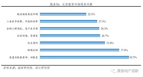 (2)承租体验差。现有的租赁环境痛点较多,链家研究院对北京租户进行的一项调查发现,42.5%的受访租客表示:现有租赁房屋配套老旧、功能差;37.8%的租客表示:租期太短需要频繁更换房屋;31%的受访租客遇到过业主违约;28.7%的租客认为社区环境管理差。