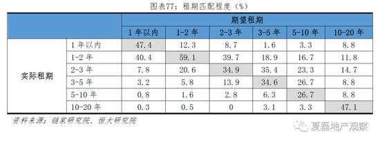 (3)租期错配。目前不规范的租赁市场中,包租转租现象频繁,由此导致租期错配。据链家研究院的一项调查,期望租期与实际租期完全吻合的租客占比较低。针对期望签租1-2年的租客来说,59.1%的租客期望租期与实际租期吻合,除此之外,二者完全吻合的租客占比均不超过50%。部分希望短租的被迫接受长租,部分希望长租的不得不短租。例如,23.3%的被访者期望签约5-10年长租,却被迫签约2-3年短租。