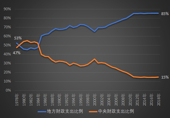 从1994年分税制改革之后,地方政府的财政收入占全国财政收入的比例从75%骤降到53%,而地方财政支出占全国的比例却从70%蹿升到85%。在公共财政支出的最大头“教育”中,地方负担达到90%以上。