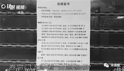 但今时不同往日。记者在负一层找到了BHG超市原址,紧闭的卷帘门上贴着 “告顾客书”:因经营调整,超市于10月11日闭店,会员卡和超市储值卡可在南京所有BHG使用。”