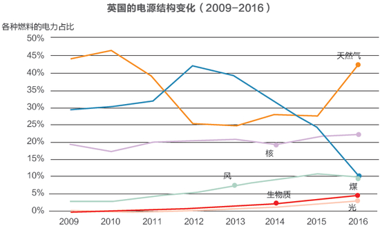 如果说英国的快速下降是碳定价与最小定价的主要贡献,那么美国无疑其气候政策在倒推,其煤炭比重的下降完全是市场机制自动发挥作用。