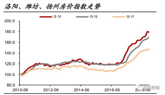 2016-2018年的暴涨,最大的支撑来自于棚改及棚改货币化。这是大拆大建的玩法,而且背后还有央行释放基础货币作为补贴的来源,这是对三四五线城市的定向放水。