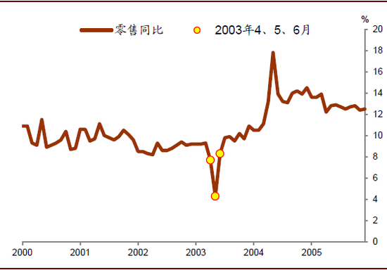 图表: 2003年4、5、6月零售同比增速明显放缓