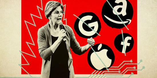 民主党参议员伊丽莎白·沃伦曾声称一旦在2020大选中胜出,她将拆分巨型互联网科技公司。但沃伦最终退选(@路透社)