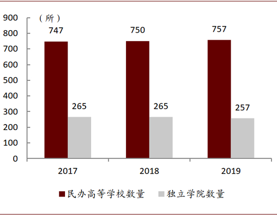 图表: 全国民办高等院校数量